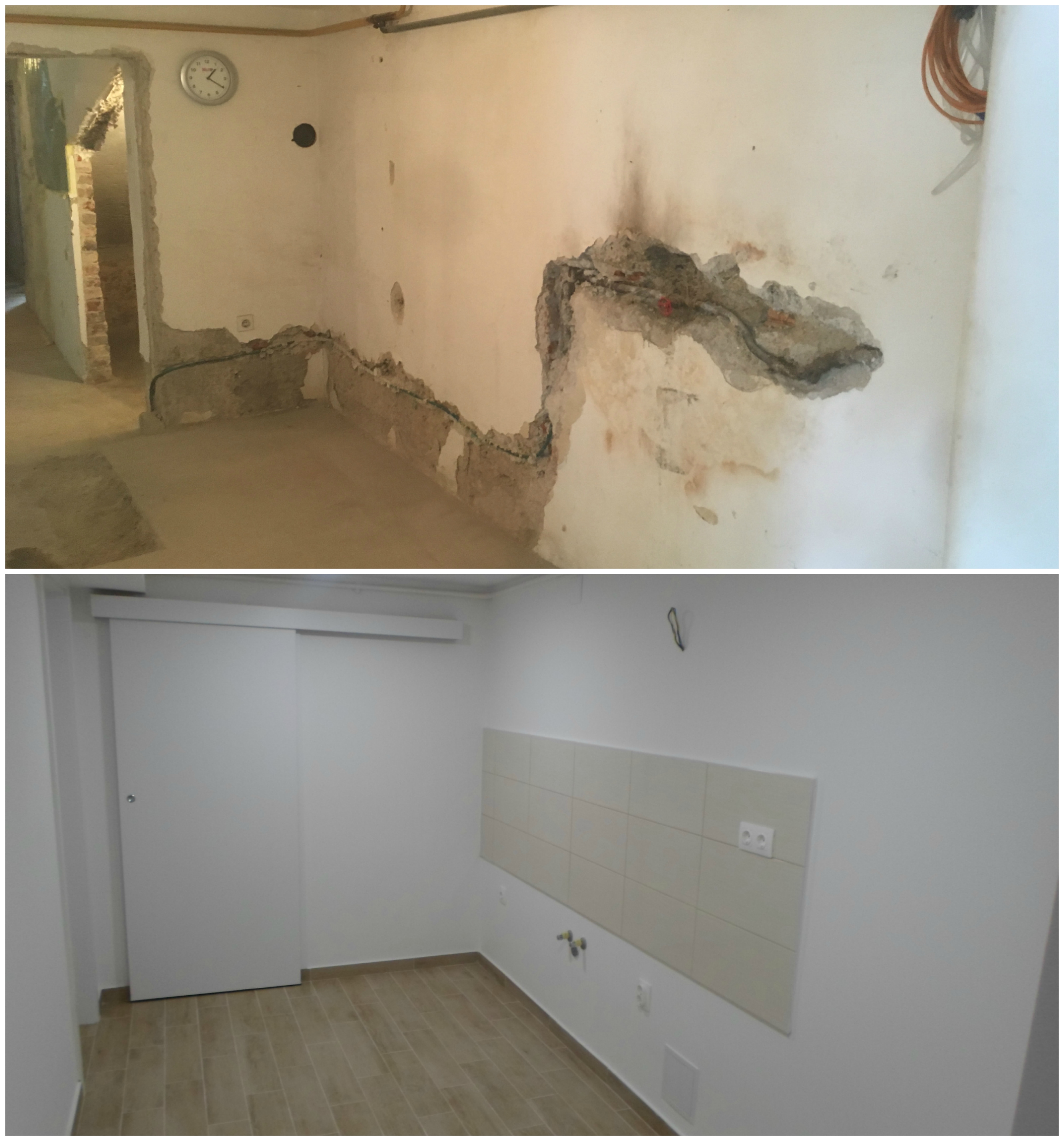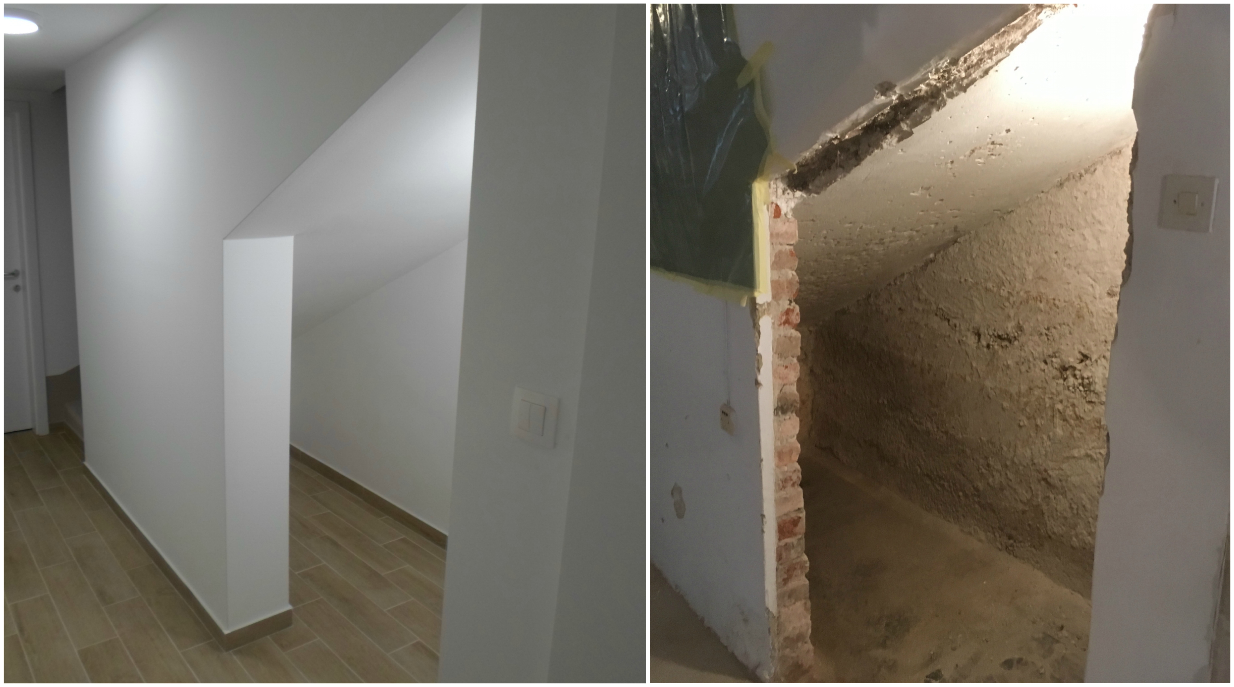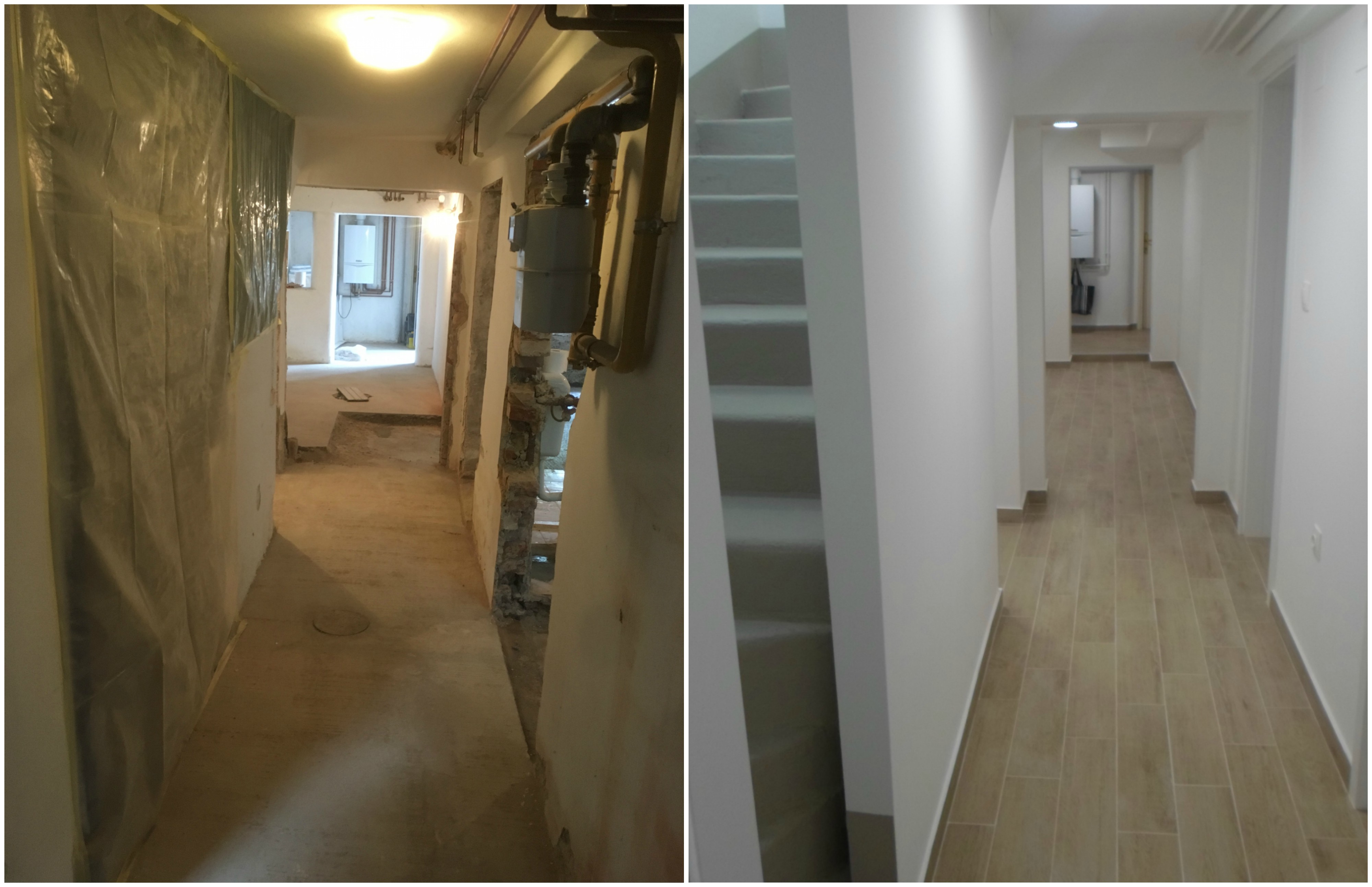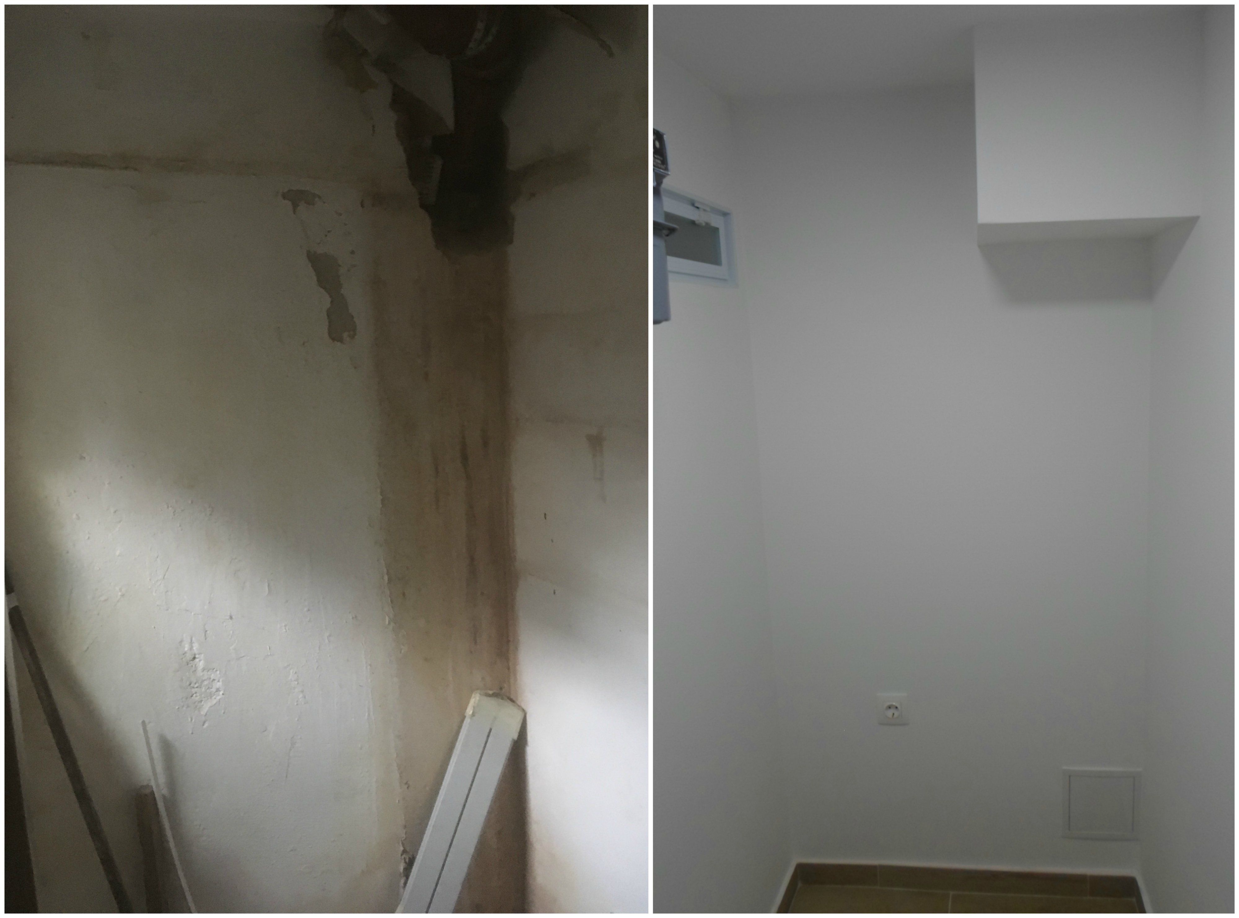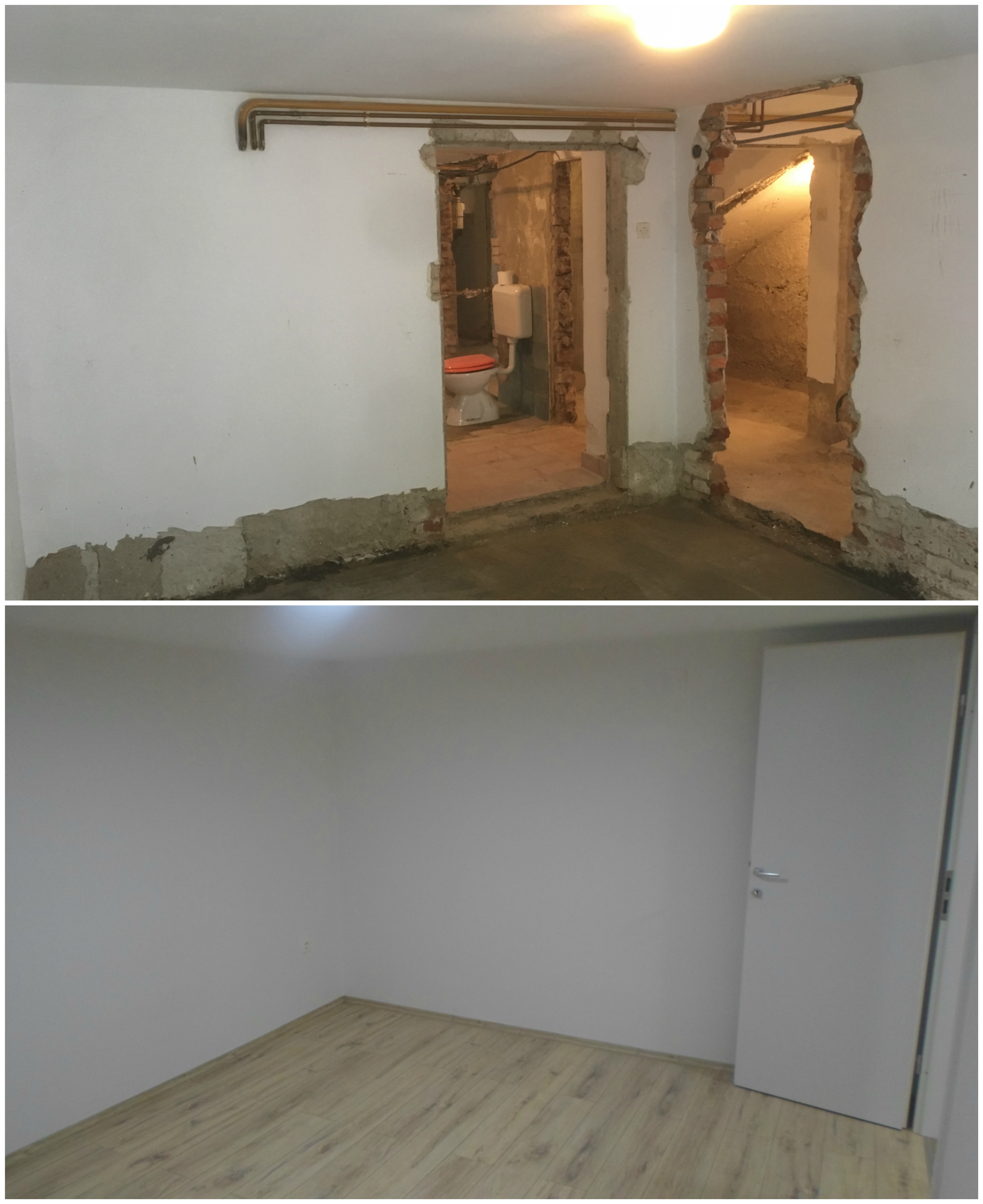 Adaptacija suterena u obiteljskoj kući tlocrtne površine cca 70 m2. Zatečno stanje bilo je izrazito derutno te je bila potrebna opsežna adaptacija kako bih se dobio prostor koji je pogodan za život. Izvršene su manje preinake rasporeda koje su omogućile bolju iskoristivost prostora, nažalost nije bilo moguće izvršiti veće promjene rasporeda zbog postojeće nosive konstrukcije objekta koja je morala zadržati svoju poziciju. Da bih kompletnom objektu omogućili tehničku funkcionalnost izmjenjene su kompletne vodovodne i kanalizacijske cijevi do “šahta” te nova elektroinstalacija unutar objekta. Rušenjem slojeva poda i izradom nove AB ploče uspjeli smo povećati visinu stropa koja je bila izrazito niska i odstupala je od prostorije do prostorije. Od bitnijih zahvata koje valja spomenuti je izrada hidroizolacije kojom smo sprječili eventualno prodiranje vlage u objekt. Završni radovi i opremanje objekta je izvedeno u neutralnom tonu te je rezultat odličan !